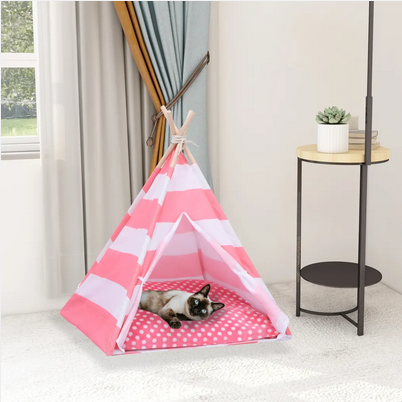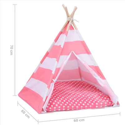 Dieses Haustierzelt mit den Abmessungen 60 x 60 x 70 cm verfügt über einen massiven Kieferholzrahmen, der es robust und stabil auf dem Boden macht. Die Zeltabdeckung besteht aus starker Pfirsichhaut, die für den Langzeitgebrauch haltbar ist. Das bequeme, dicke, gepolsterte Kissen bietet mehr Komfort, während sich Ihre pelzigen Freunde ausruhen oder schlafen. Das waschbare Kissen ist mit einem Reissverschluss ausgestattet. Das Spielhaus lässt sich bei Nichtgebrauch einfach und platzsparend in der mitgelieferten Tragetasche verstauen.