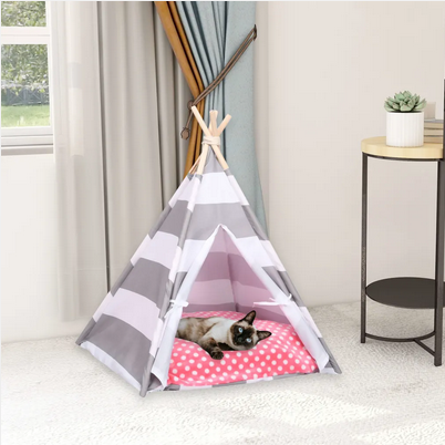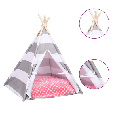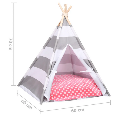 Dieses Haustierzelt mit den Abmessungen 60 x 60 x 70 cm verfügt über einen massiven Kieferholzrahmen, der es robust und stabil auf dem Boden macht. Die Zeltabdeckung besteht aus starker Pfirsichhaut, die für den Langzeitgebrauch haltbar ist. Das bequeme, dicke, gepolsterte Kissen bietet mehr Komfort, während sich Ihre pelzigen Freunde ausruhen oder schlafen. Das waschbare Kissen ist mit einem Reissverschluss ausgestattet. Das Spielhaus lässt sich bei Nichtgebrauch einfach und platzsparend in der mitgelieferten Tragetasche verstauen.